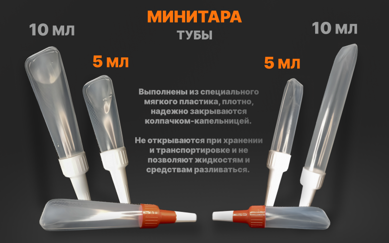 Тубы с крышками и колпачки капельного типа от 5 до 10мл. Туба 30, 75, 100 мл с крышкой и дозатором-пробкой.
